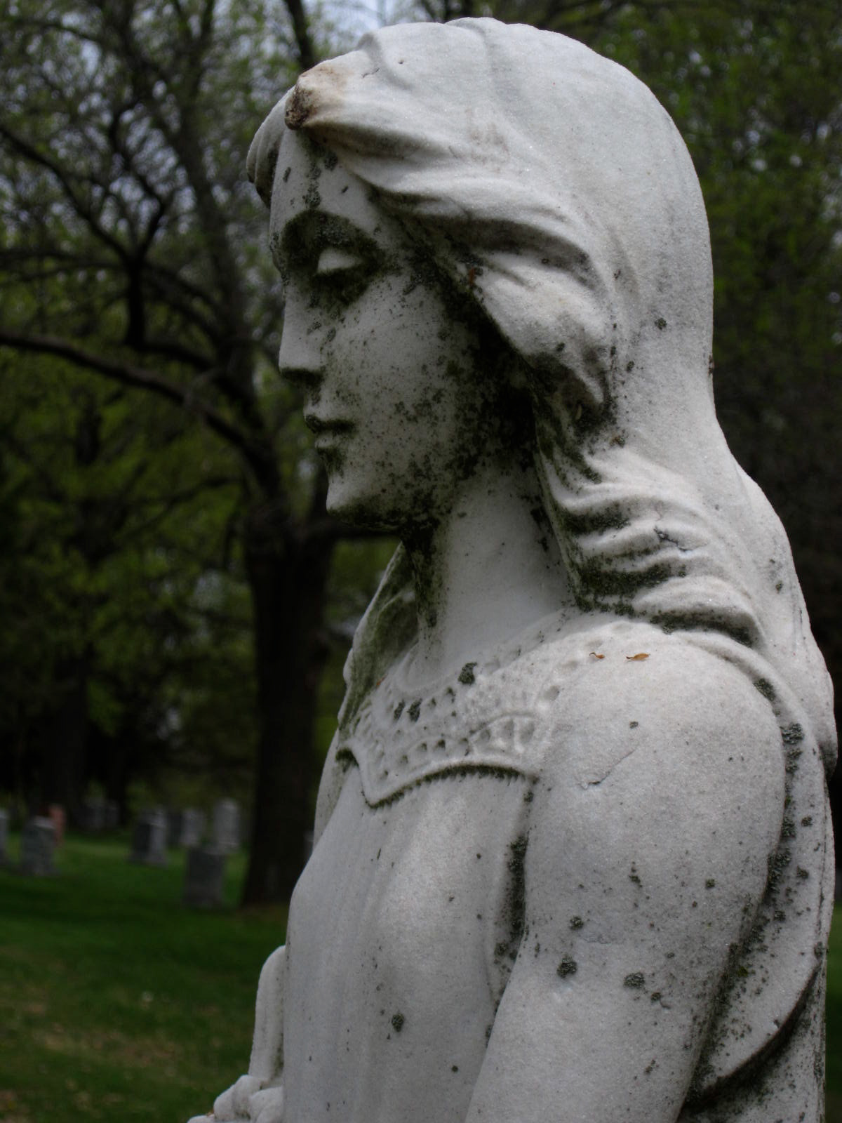 This watchful maiden was found in Memorial Park Cemetery in St. Louis. I took many different shots of her in various poses, but this one seemed the most striking to me.